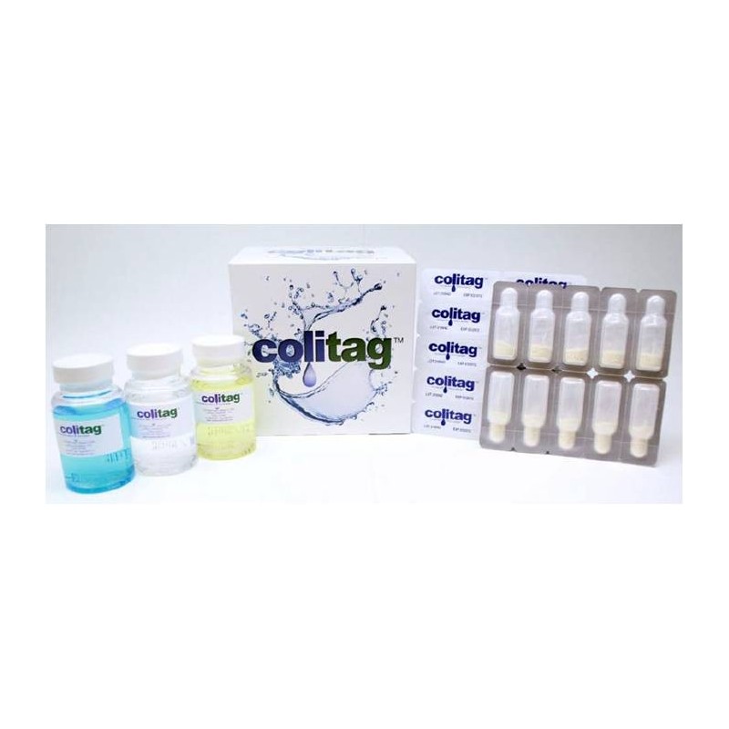 Colitag ™ é um teste de substrato enzimático de presença / ausência e MPN que fornece 16-48 horas de coliformes totais e determinações de E. coli e detecta 1 MPN de coliformes totais ou bactérias E. coli por 100 mL de amostra de água. Coitag ™ é confiado em um mercado crescente de mais de 24 países.