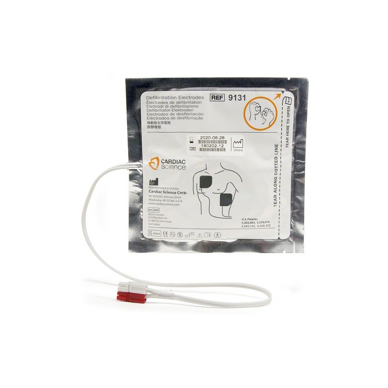 Eletrodos de desfibrilação para adultos para todos os AEDs da Cardiac Science e Survivalink®. Substitui o antigo estilo "9130". Sugerimos manter um conjunto extra à mão em caso de uma segunda emergência.