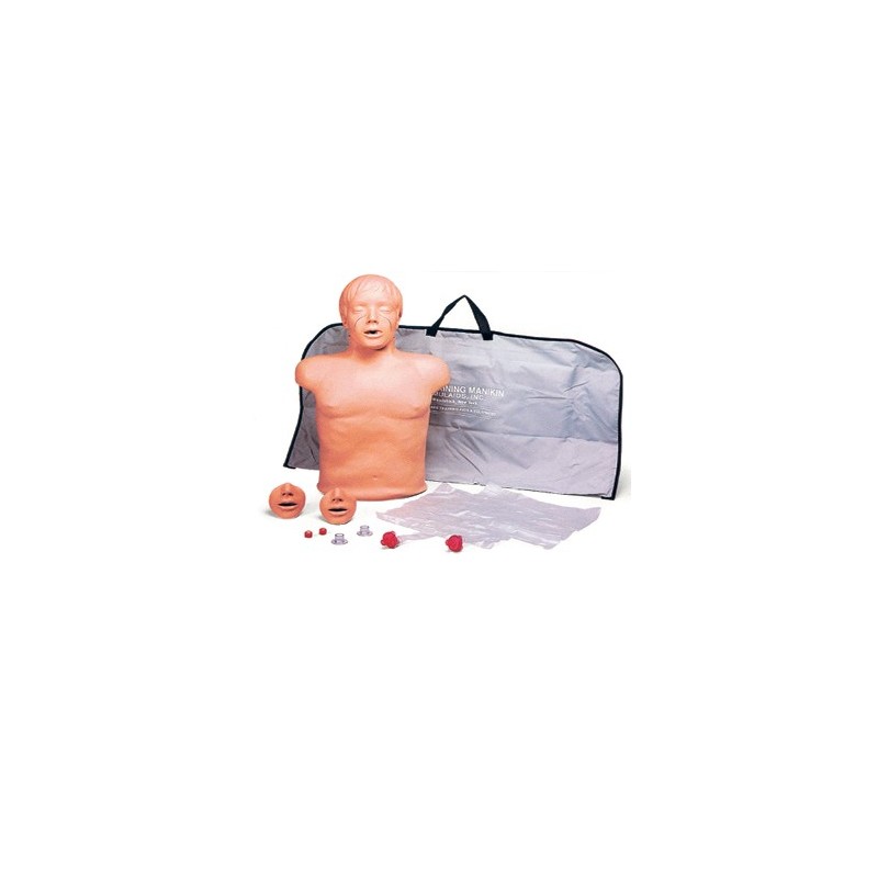 O Manequim RCP é fornecido com 3 pulmões / vias respiratórias descartáveis, 3 máscaras para boca / nariz e uma bolsa de nylon com uma almofada para os joelhos.