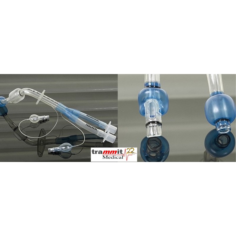 Tubo para Traqueostomia Bronquial Duplo Lúmen para intubação bronquial seletiva esquerda/direita, em PVC descartável e transparente, com dois balões pré-moldados de baixa pressão e alto volume sendo um traqueal (transparente) e outro bronquial (azul) e respectivos balões para controle de pressão (transparente e azul) com válvula de segurança e encaixe de seringas Luer e Luer-Lock, ponta retraída atraumática, marca radiopaca, graduado, conectores semi-montado