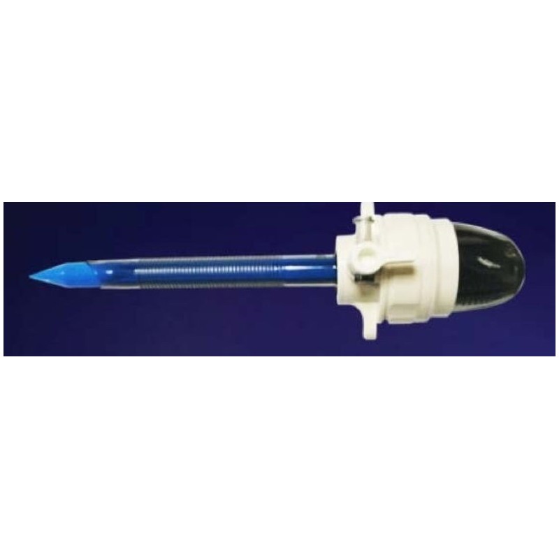Cânula com trocarte para procedimentos endoscópicos, descartável, contendo cânula externa em policarbonato, trocarte com corpo e extremidade distal em policarbonato com ponta dilatadora e corpo em formato rosqueável e transparente, o que possibilita uma visualização interna para o controle dos instrumentos. É leve e possui um injetor lateral para a manutenção do pneumoperitôneo, com 6, 8, 13, 15 e 18 mm de diâmetro externo e nos comprimentos, 65, 100 e 110 mm.
