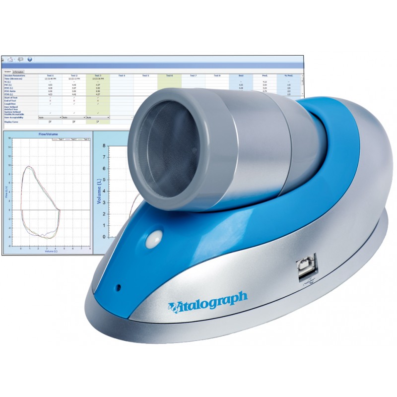 O Vitógrafo Pneumotrac ™ é o espirômetro baseado em PC ideal para uso adulto e pediátrico em saúde geral e saúde ocupacional.