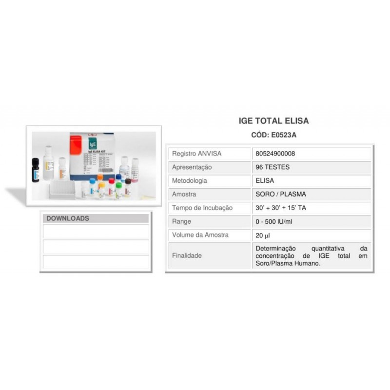 Enzima Immunoassay para a Determinação quantitativa da concentração de IgE Total em Soro/Plasma Humano (Uso apenas para Diagnóstico In Vitro) Catalogo nº PT-IgE-96