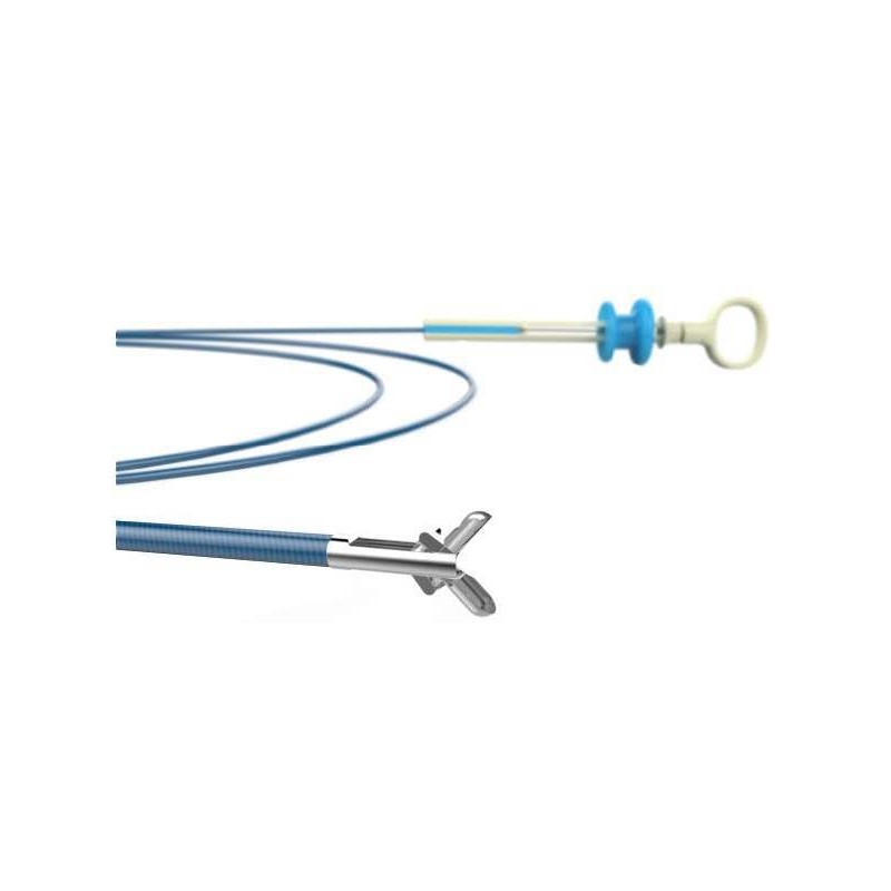 O corpo da pinça é fabricado em aço Inoxidável, muito flexível e revestido em polietileno, que reduz a fricção do aço inoxidável no canal do endoscópico.