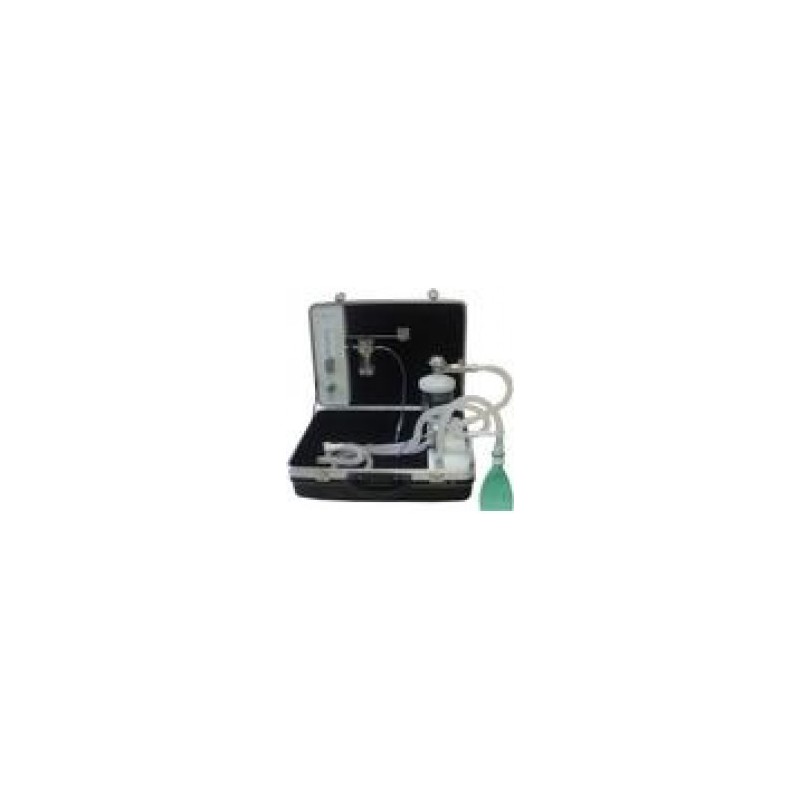 Sistema de anestesia portátil de uso estacionário ou em transporte para administração de anestesia inalatória através de respiração controlada manual ou espontânea. Dotado de filtro absorvedor de CO2, os gases expirados são reaproveitados, propiciando diminuição no consumo do oxigênio e dos gases anestésicos.