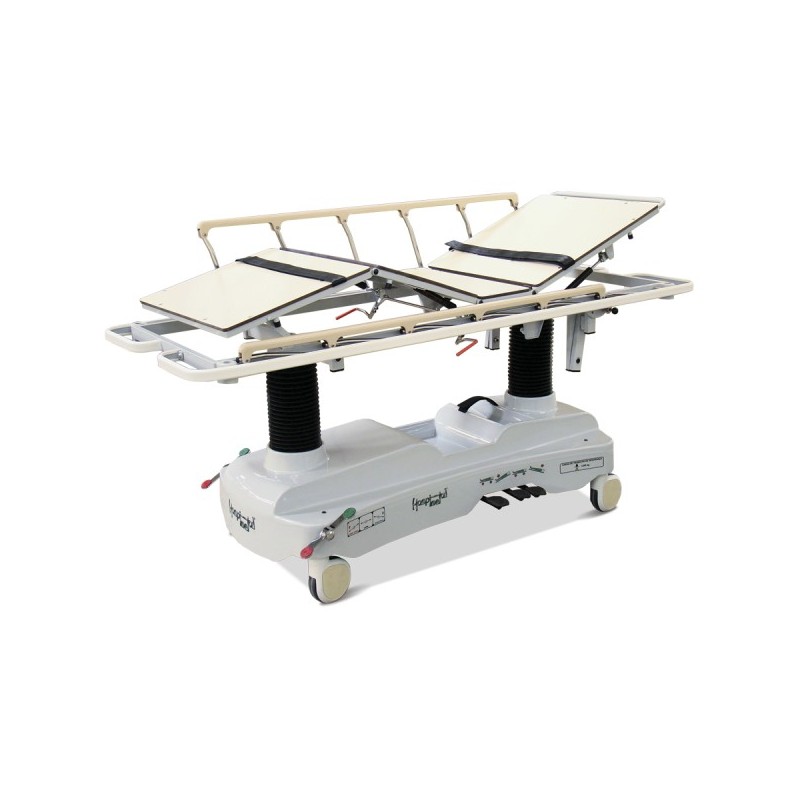 Maca Hospitalar Hidráulica Fawler modelo HM 2059 F, com leito radiotransparente, 2 colunas.